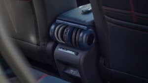 Trung tâm bảng điều khiển là màn hình cảm ứng kích thước 12,8 inch ở bản tiêu chuẩn và 15,6 inch ở bản Premium. Đặc biệt, màn hình này có khả năng xoay 90 độ để hiển thị theo chiều ngang hoặc dọc tùy nhu cầu sử dụng. Phía sau vô-lăng là cụm đồng hồ tốc độ kỹ thuật số LCD kích thước 5 inch, cung cấp thông tin vận hành rõ ràng và trực quan. Nội thất xe còn được trang bị đèn viền trang trí, đèn đọc sách, cùng các cổng sạc USB bố trí ở cả hàng ghế trước và sau.
