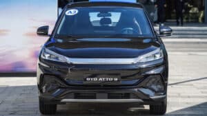 Phần đầu xe BYD Atto 3 nổi bật với mặt ca-lăng liền khối, không cần nhiệm vụ giải nhiệt cho động cơ, tạo nên vẻ ngoài liền mạch và hiện đại. Các đường vuốt cong từ trước ra sau góp phần tăng tính khí động học và sự mềm mại trong thiết kế. Xe được trang bị đèn pha LED tiêu chuẩn, đi kèm phanh đĩa trước/sau. Riêng bản Premium có thêm tính năng đèn pha thích ứng, giúp tối ưu khả năng chiếu sáng trong các điều kiện khác nhau. Đèn LED phía sau được thiết kế điệu đà, nối dài sang hai bên bằng dải LED, tạo điểm nhấn nổi bật. Vành xe có kích thước 17 inch ở bản tiêu chuẩn và tăng lên 18 inch ở bản cao cấp. Gương chiếu hậu của xe hỗ trợ gập điện và tích hợp chức năng sấy ở cả hai phiên bản.