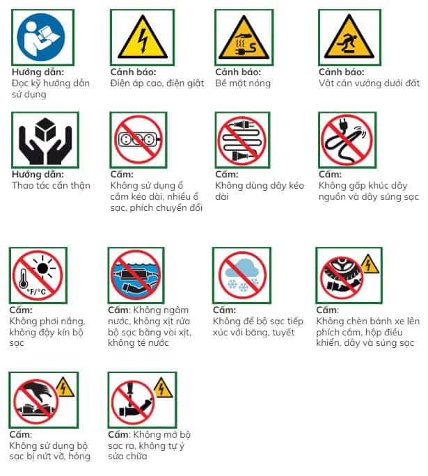 4. Ý nghĩa các biểu tượng cảnh báo khi sử dụng bộ sạc di động